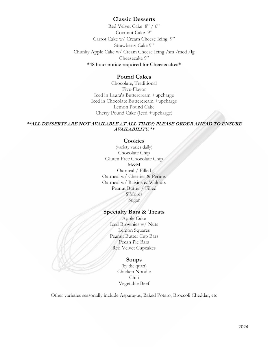 Sweet options like cherry cheesecake minis or oatmeal cream-filled cookies add a subtle finish to your meal or a treat alongside your afternoon coffee. The menu’s thoughtful balance of fresh ingredients and comforting flavors matches the friendly, welcoming feel of the space, making it a place where everyday meals can feel quietly satisfying and well made.
