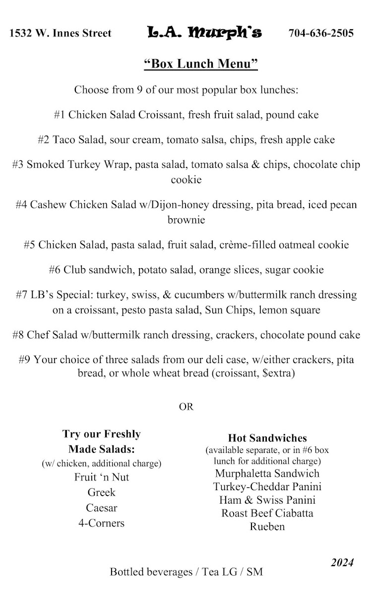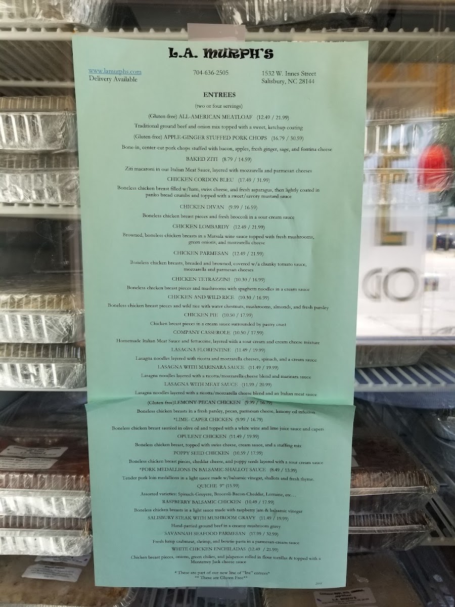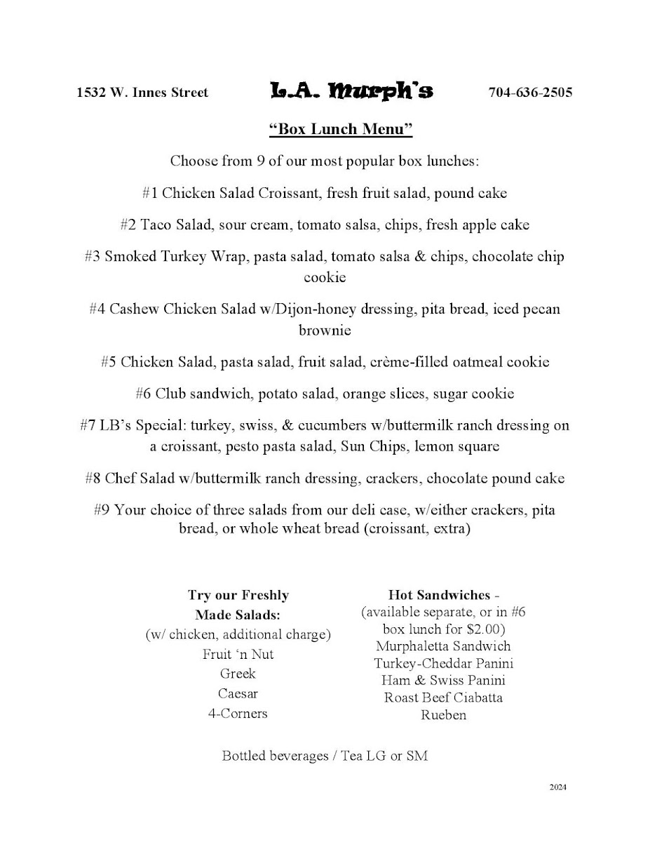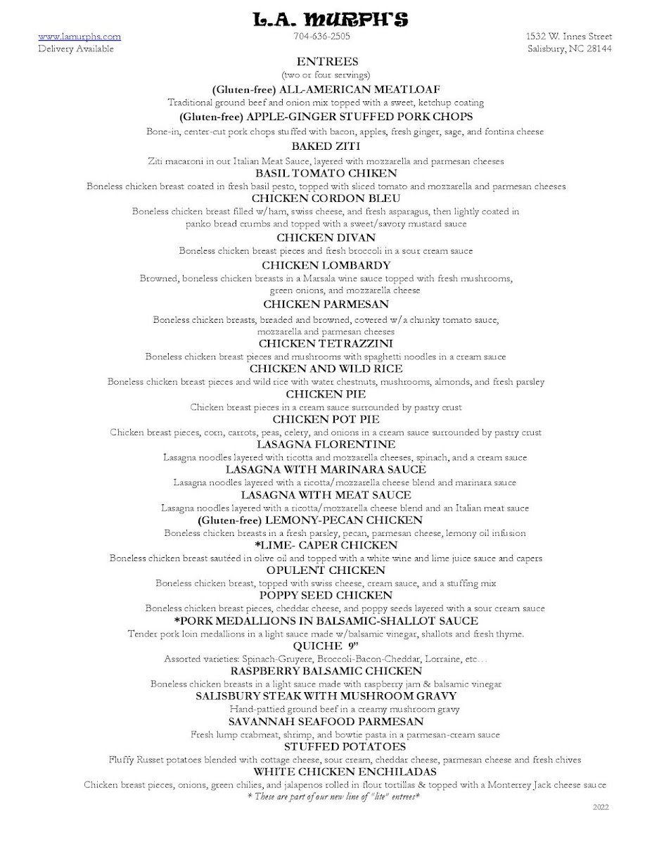 L A Murph's Fine Cooking Menu